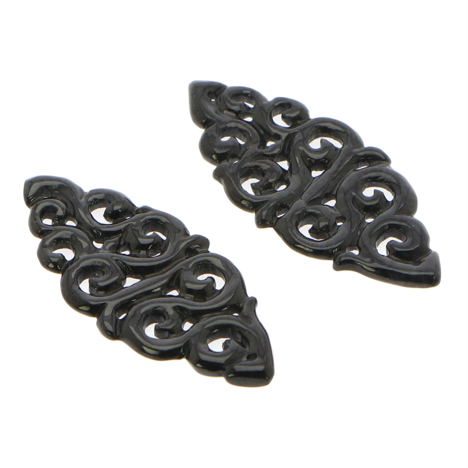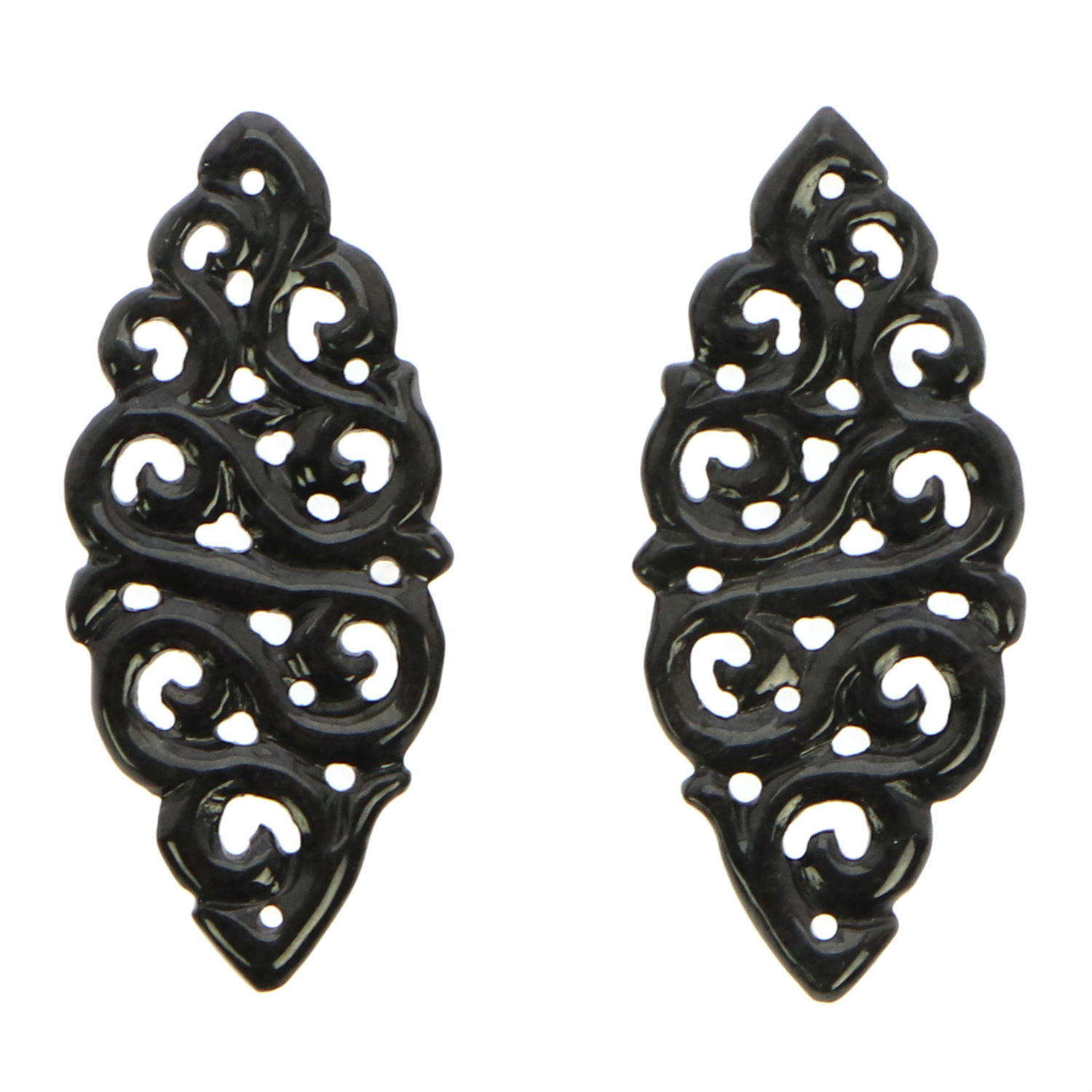 This pair of jadeite earrings feature a marquise cut and is decorated with classy swirl patterns. They are handcrafted using natural type A black jadeite jade and have holes for easy attachment. The jadeite earrings are comfortable to wear and can add an elegant oriental touch to your look.