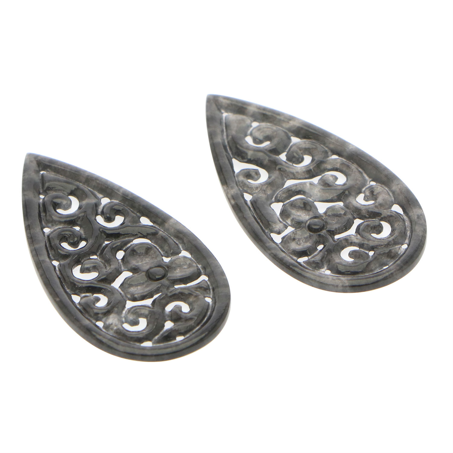 Complete a classy look for special occasions with this pair of black jadeite earrings. The earrings come in pear cut and is adorned with elegant swirl and leaf patterns. They are meticulously crafted with attention to details and is a great addition to your jewelry collection.
