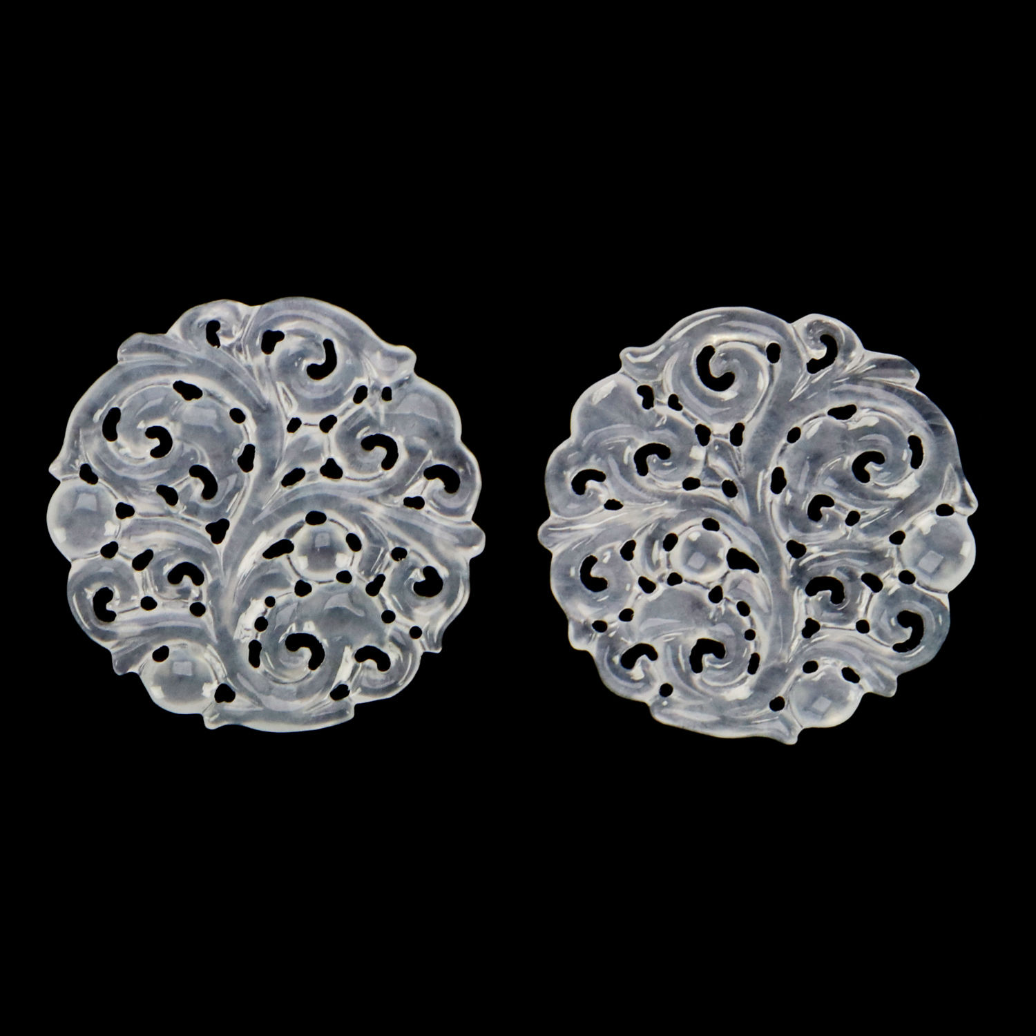 This earring is handcrafted using natural type A white jadeite jade and comes in a round shape. It is adorned with elegant swirl patterns and is can go well with different outfits. The jadeite earring is a great accessory for everyday wearing and is ideal as a gift for ladies.