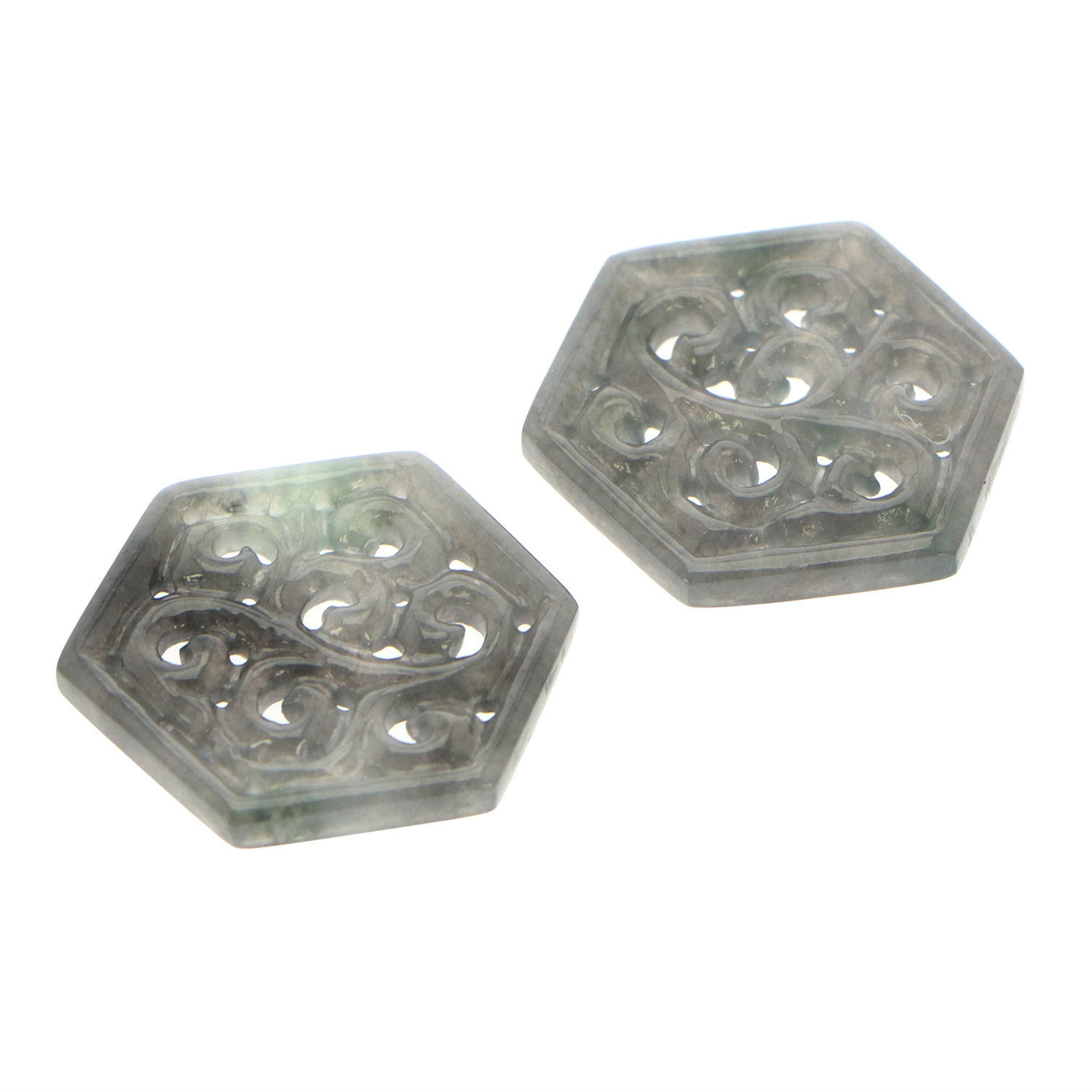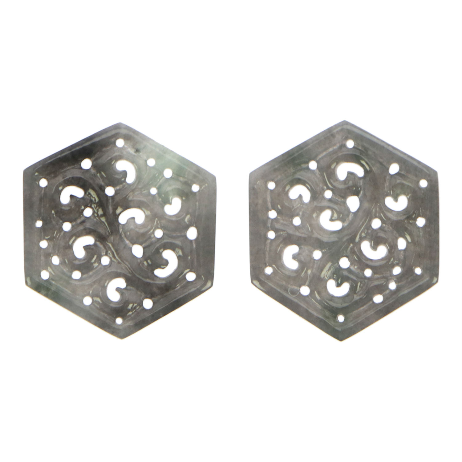 - A pair of grey hexagon jadeite jade earrings.