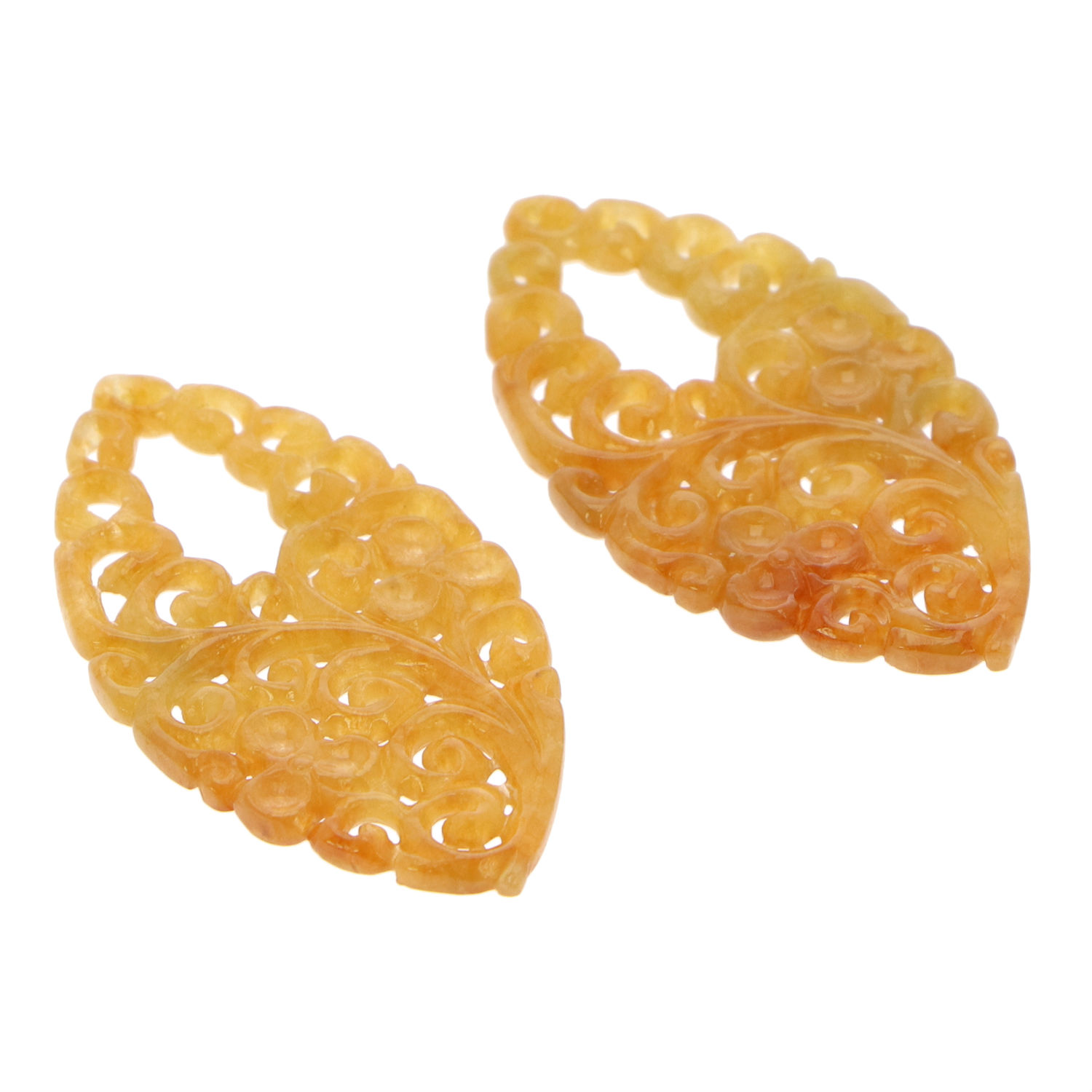 - A pair of orange jadeite jade earrings.