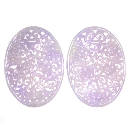 This is a pair of oval shaped jade carvings. The jade carvings are suitable as raw materials for pendants or earrings.
