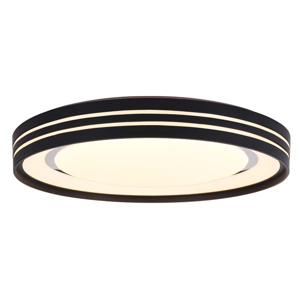 This is a round ceiling light. The main frame is black, with two white light strips as decorations, and the middle is a light - emitting area that emits warm light. The overall design is simple and modern, with a strong sense of lines. It is suitable for installation in indoor spaces such as living rooms and bedrooms, and can provide a warm and design - oriented lighting effect for the room.