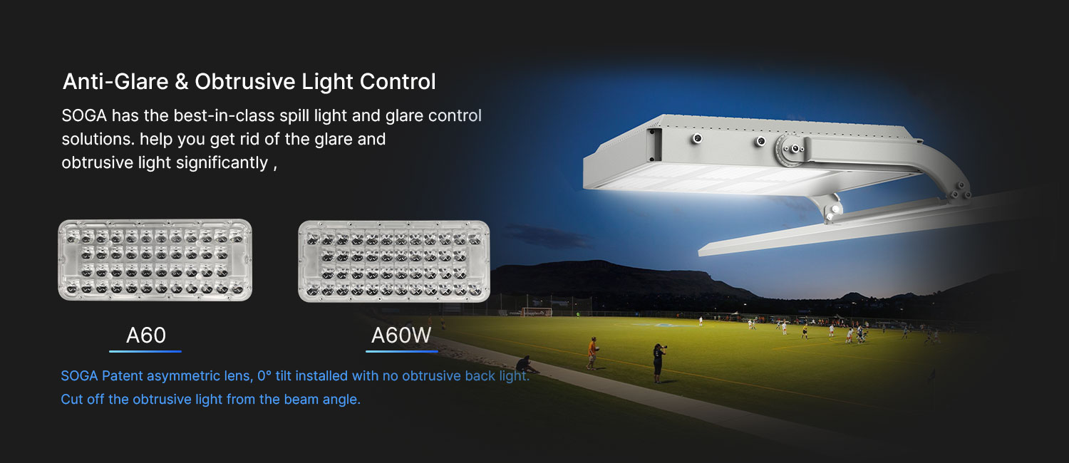 Patented c series LED sports lights have an elegant appearance with die-cast modules, IK rating is IK08 Vertically and horizontally rotatable heat sink design makes every module flexibly targeting to specified point to get much better light uniformity on sports field. Upward light ratio=0 for light fixture with symmetrical beams and spill covers Upward light ratio=0 for light fixture with asymmetrical beams Optional long distance wireless control system and DMX control system