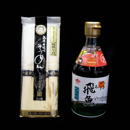 Featured here is a Japanese noodle pack and flying fish sauce. This noodle pack is made with top-quality flour for the best taste and texture. Serve this noodle with the uniquely flavored sauce for any meal.