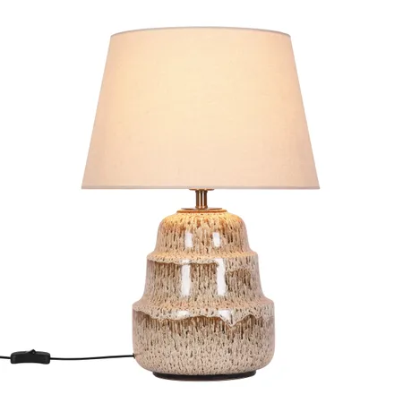 Transform any corner into a cozy, stylish retreat with this stunning table lamp. Its textured ceramic base boasts artisanal craftsmanship, blending organic charm with modern sophistication. Topped with a soft linen shade, it diffuses a warm, inviting glow that perfects the ambiance for relaxation or conversation.