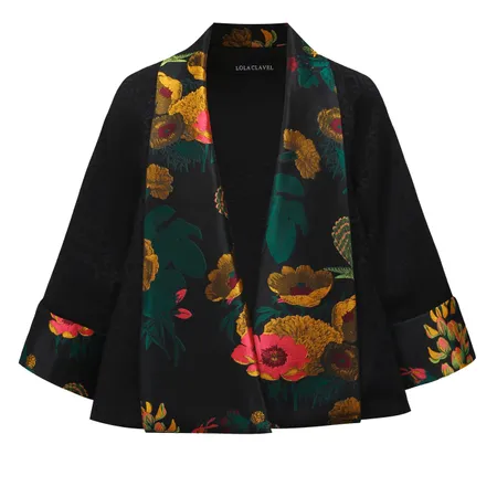 A western twist of the traditional kimono cut.Designed to effortlessly transition from day to night, the kimono-style sleeves and structured drape make it a standout piece for modern wardrobes. Whether layered over evening wear or paired with casual separates, this reversible jacket brings a contemporary flair in one statement piece.