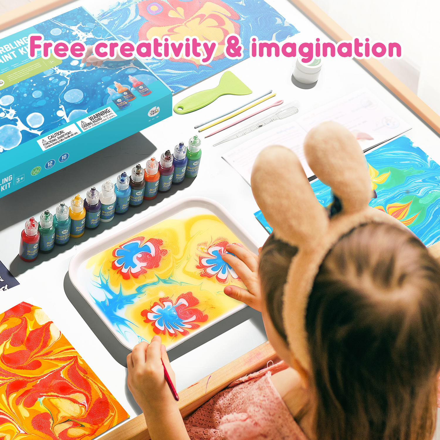 【Super Interesting Painting Kit】 Our marbling paint kit for kids is a so fun water painting art kit, It fascinates children and adults as soon as they starting the item, several hours of art & crafts with family or friends.