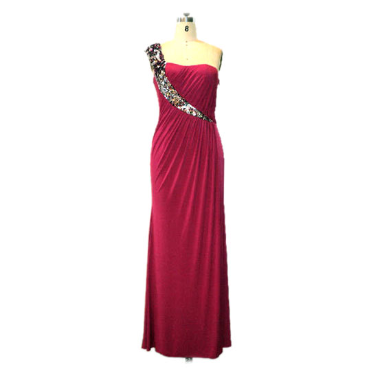 Showcased is an evening dress with a classy and feminine design. The alluring red and the eye-catching, sparkling off-shoulder design put you in spotlight during party. The dress is suitable for formal occasions or parties.