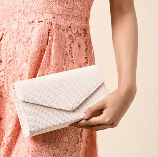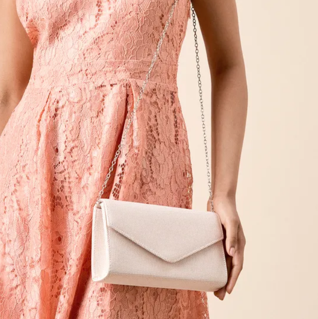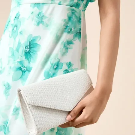 • Elegant envelope clutch with eye-catching glitter textile finish
