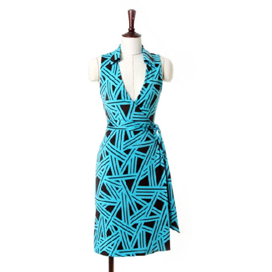 This is a jersey wrap dress that comes with a two-toned appearance in blue and black. It is designed with a low V-neck neckline and slim-fit bodice. This one-piece dress offers a soft and comfortable fit.