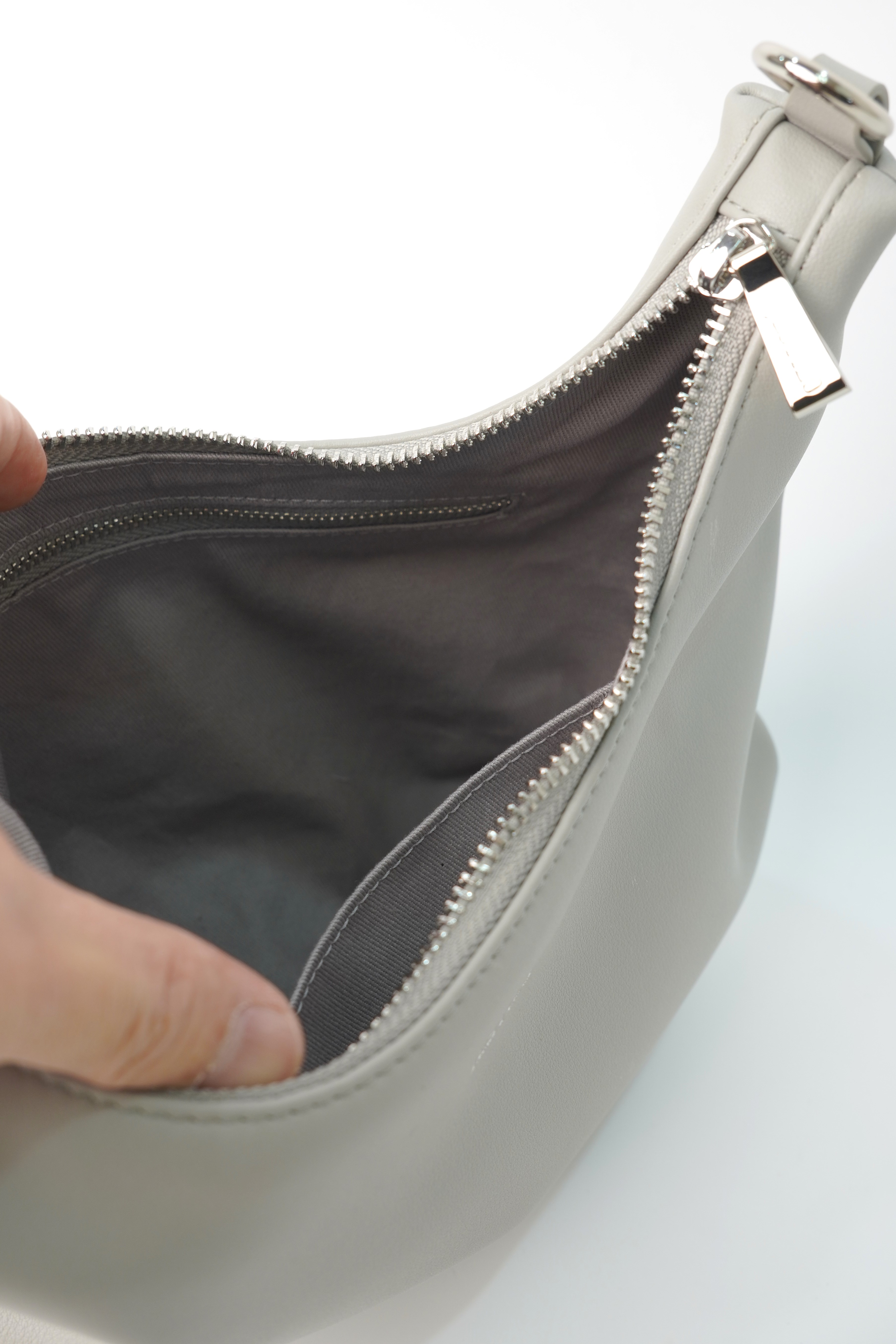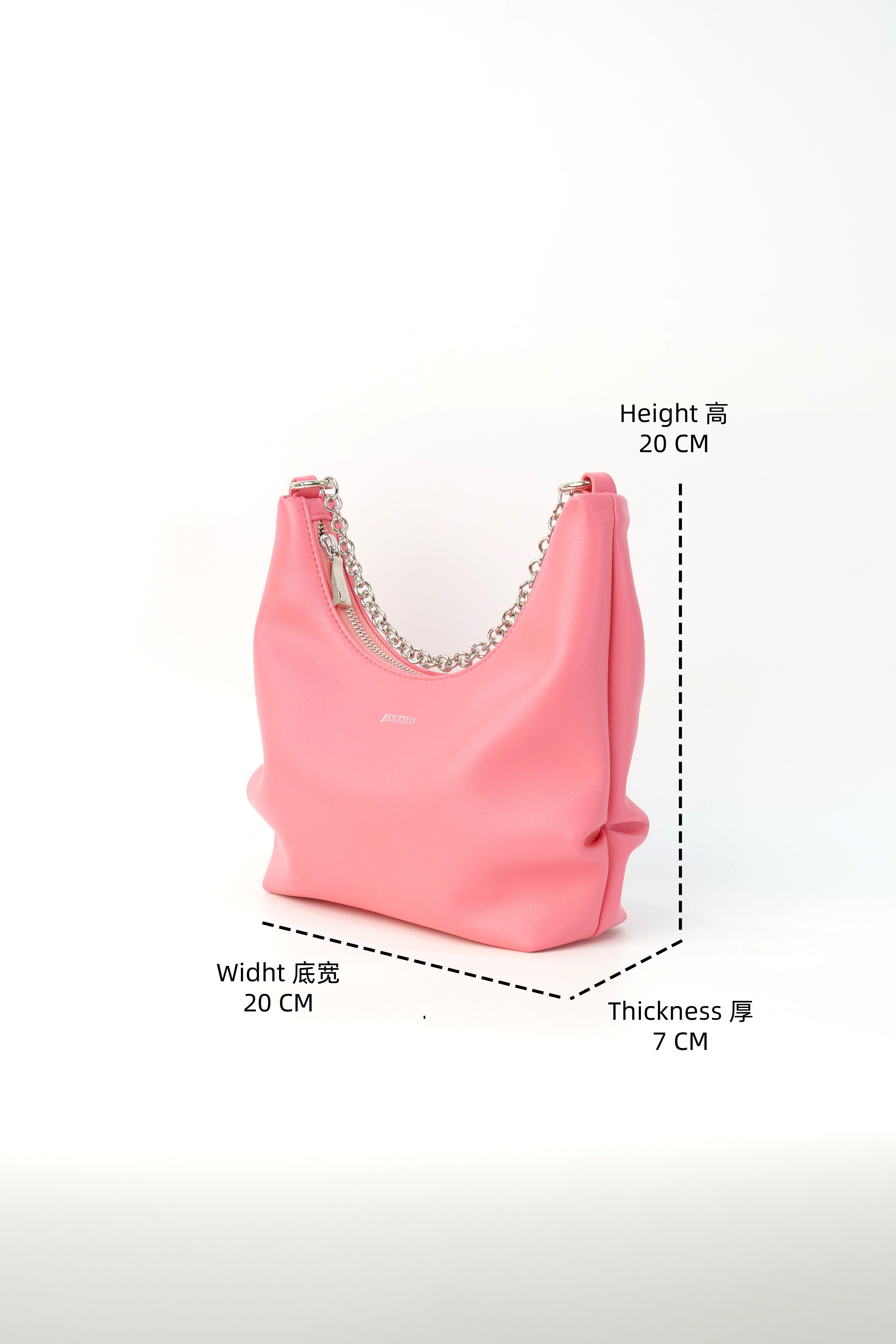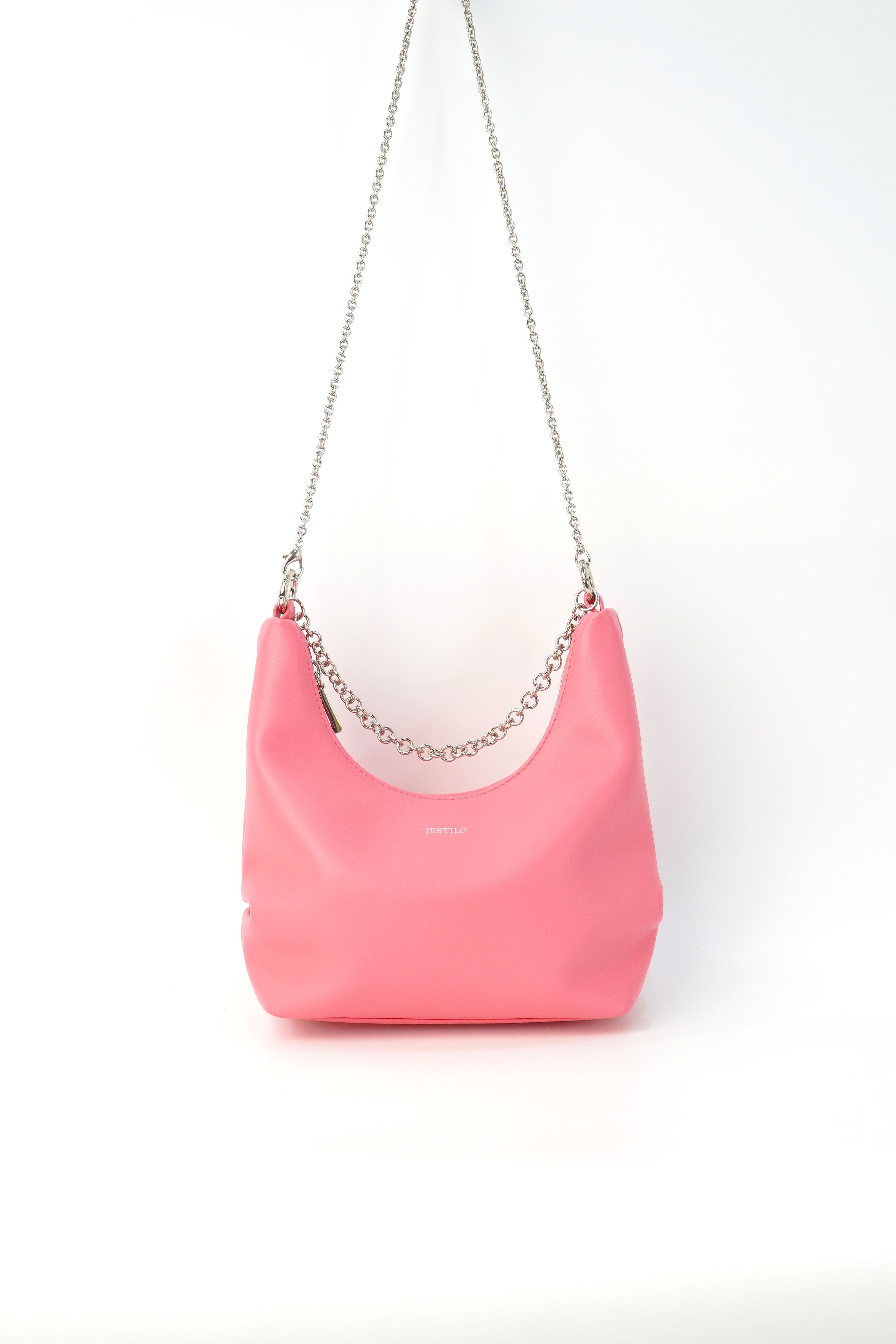 This genuine cowhide leather half-moon bag boasts a sleek, curved silhouette in a warm light tone. Equipped with a polished silver chain strap, it supports multiple wearing ways—handheld, shoulder or crossbody—for flexible styling. The top zipper closure ensures safe storage, while a built-in inner pocket helps keep daily essentials tidy. With its minimalist design and buttery-soft texture, this elegant half-moon bag is a perfect daily companion for effortless elegance.