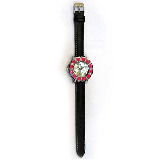This jeweled-lever automatic watch features a non-numeral dial with graceful floral patterns. The thick circular bezel is embellished with tubes of dazzling stones for a luxurious touch. The genuine leather straps offer high comfort to the wearer.