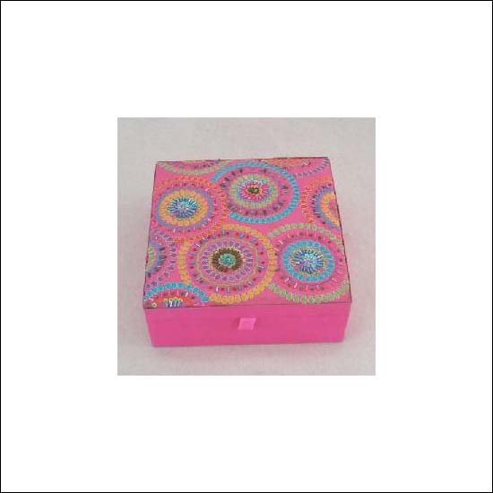 • The jewellery box is in pink colour with multi coloured embrodiery and beaded