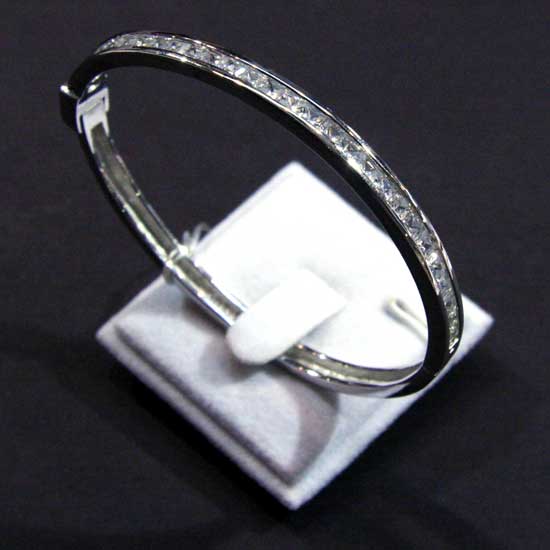 This gorgeous bangle features a dazzling 925 silver construction. It comes with sparkling Cubic Zirconia stones all over, which showcase a touch of elegance. Add this stylish bangle to your jewelry collection.