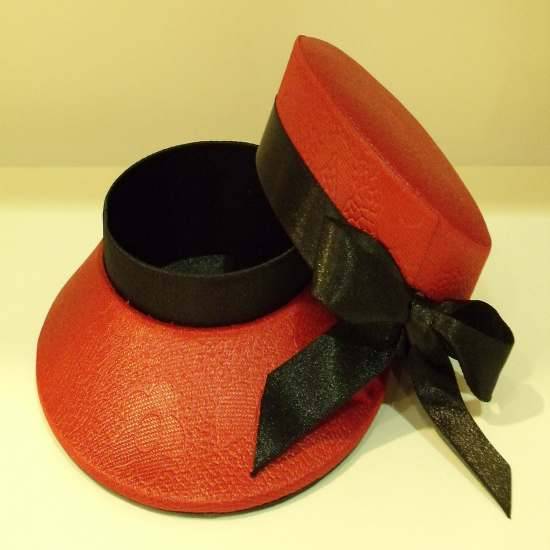 Featured is a uniquely designed jewelry box in a hat shape. It is made of cardboard and comes with a decorative ribbon bow. It's a perfect storage for jewelry such as bracelets, necklaces, etc.