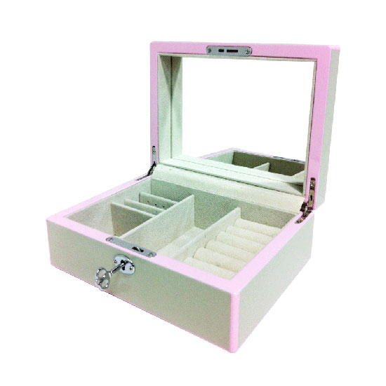 This jewelry box comes with a stylish and fashionable design. It is designed with multiple storage compartments, a key, a lock and a mirror. This jewelry box is an ideal addition to your desktop.