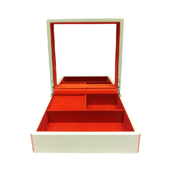 This jewelry box comes with a stylish and fashionable design. It is designed with multiple storage compartments and a mirror. This jewelry box is ideal for household use.