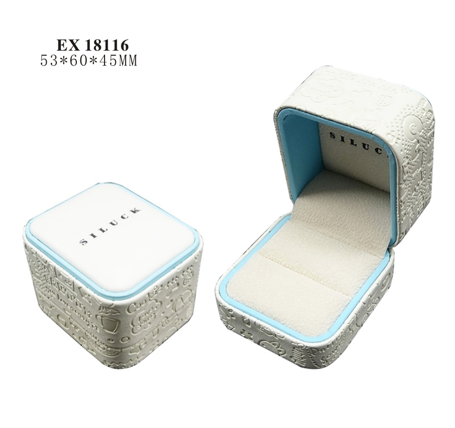 This jewelry box has a durable body in rectangular shape and has a soft interior. It is adorned with debossed patterns on the exterior and can show logos on the lid. The jewelry box can keep the stored jewelry safe and is excellent for retail and gifting use.