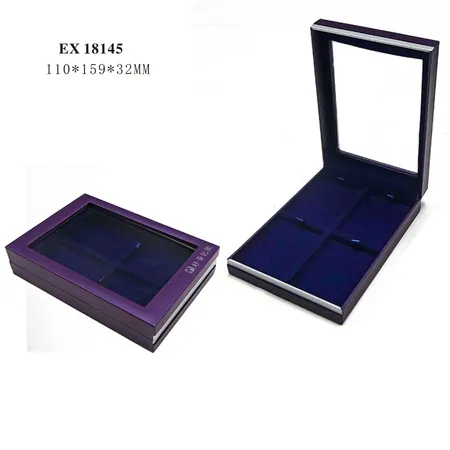 This jewelry box is rectangular shaped and has a tray divided into four sections for storage. It is covered with a windowed lid and offers an excellent view of the jewelry inside. The jewelry box provides a classy and organized way for jewelry display and can be used to show your logo.