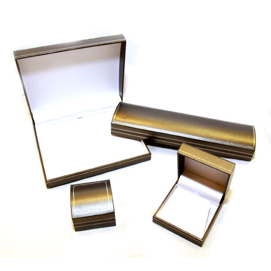 This featured set of jewelry boxes is finely crafted with paper. The golden toned exterior adds a touch of elegance for the set. Customized logos can be printed on the boxes for enhanced brand name promotion.