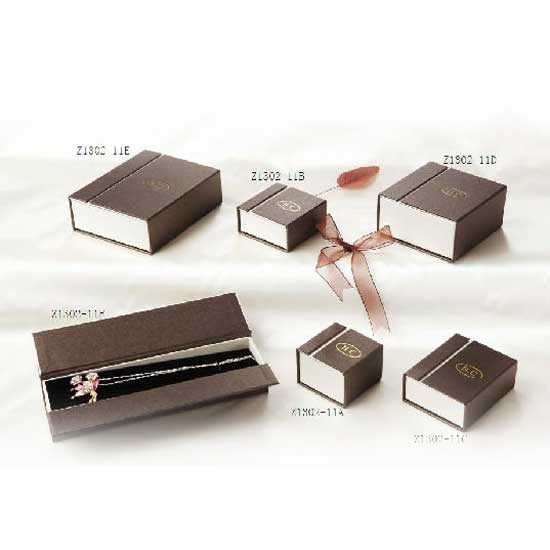 Displayed is a jewelry box series that is made of paper. Featuring an elegant design, these boxes come in a variety of sizes for storing different jewelry items. This nice jewelry box series is a good choice to keep your beloved jewelry organized.