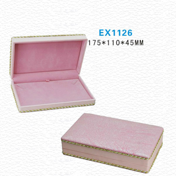 This displayed jewelry box is perfect for cradling bracelets. The box is finely composed with cardboard and canvas. Feel free to have your own logo printed on the box for further brand name promotion.
