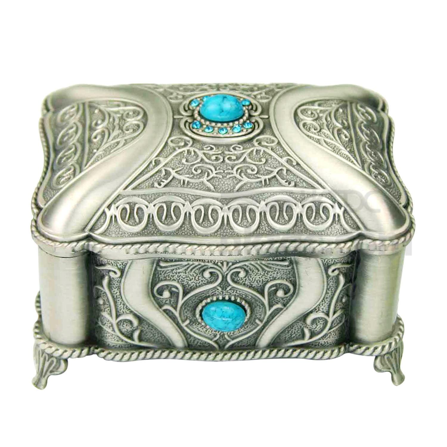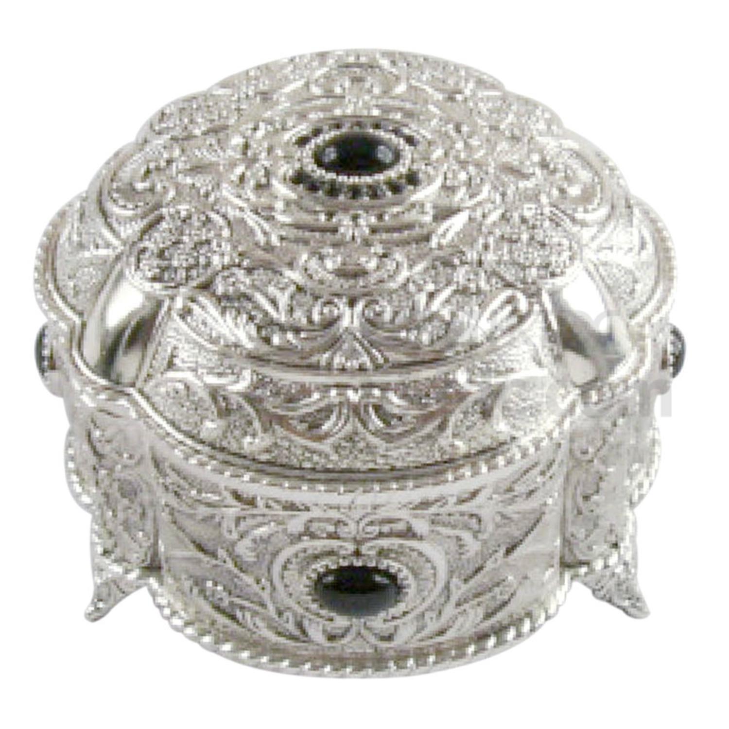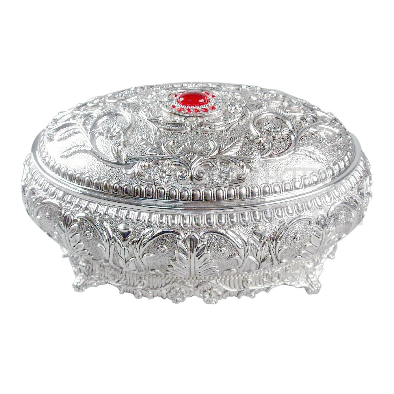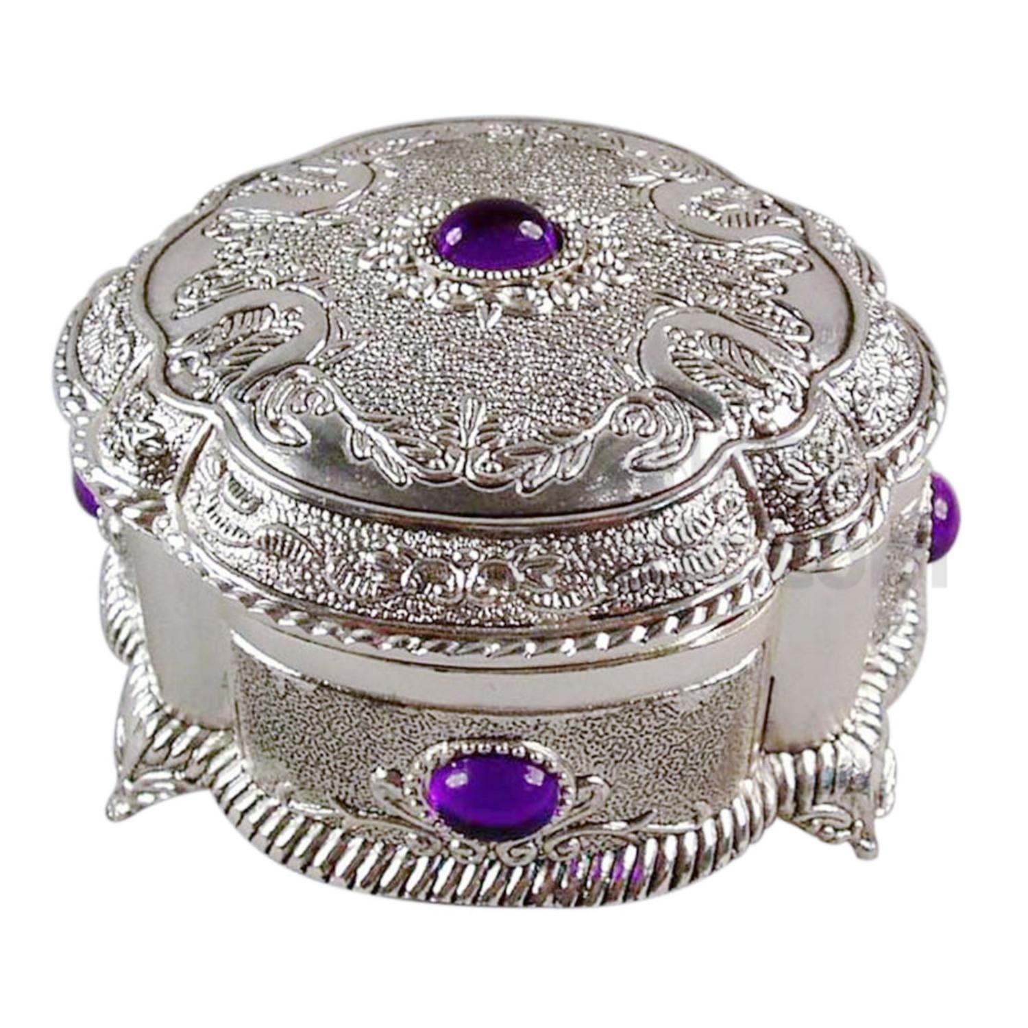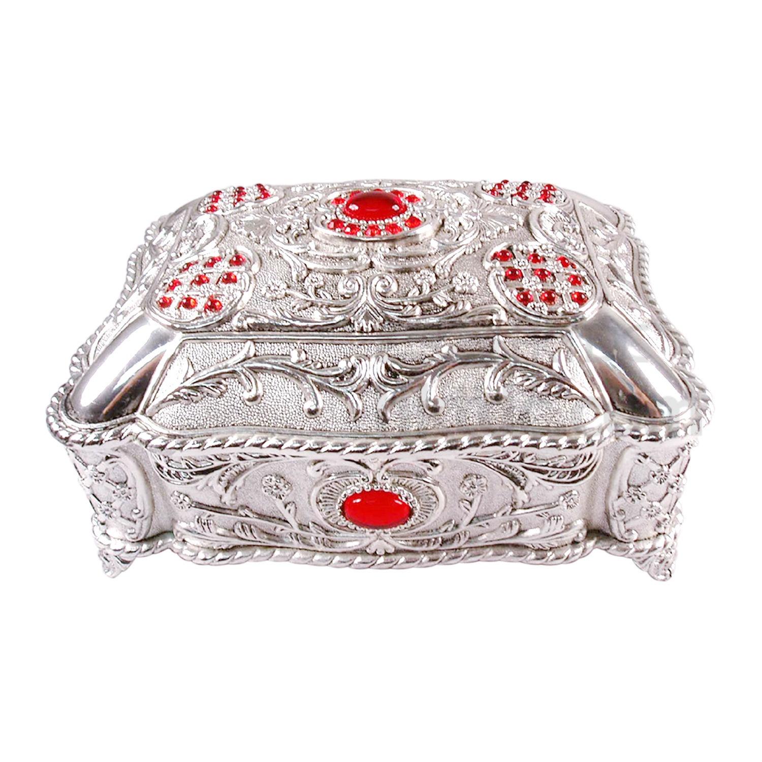 Keep your jewelry pieces safe in this sleek silver plated jewelry box. The heart-shape design promises touches of timeless elegance. For added glamor, the top cover is paved with allover glossy and shiny beads.