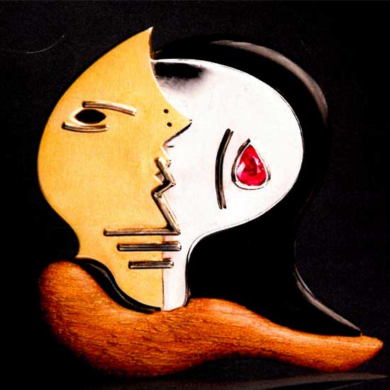 This gorgeous brooch has a unique construction. It boasts a distorted face-like design, which showcases a touch of sophistication. Add this eye-catching brooch to your jewelry collection.
