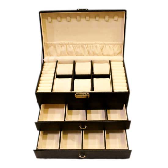 Featured here is a classy jewelry box that is made of fiberboard and PVC materials. This ornate jewelry box is designed with multiple compartments for your jewelry pieces. Protect your jewelry in style with this classical jewelry box.