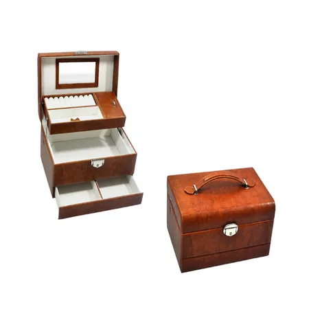 This is a jewelry case that is designed with multiple compartments. Featuring a mirror on the inside of the lid, this jewelry case is convenient to use. The brown PU leather makes this jewelry case a fashionable choice.