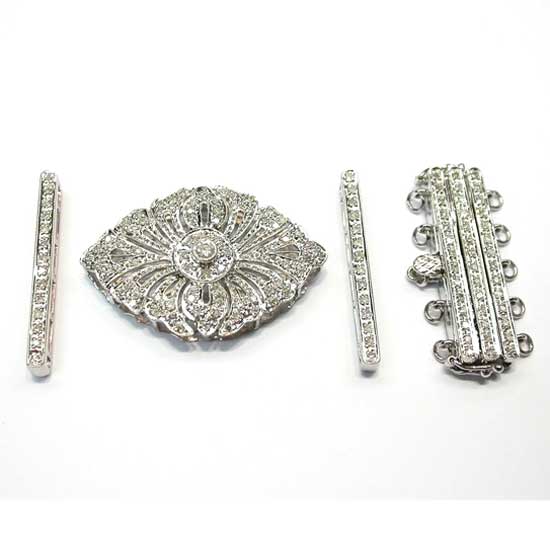 Showcased here is a jewelry clasp with a few bars. They are plated with 18K gold and are embellished with plenty of shimmery diamonds. Together with detailed construction, this set looks ultra-glamorous and magnificent.