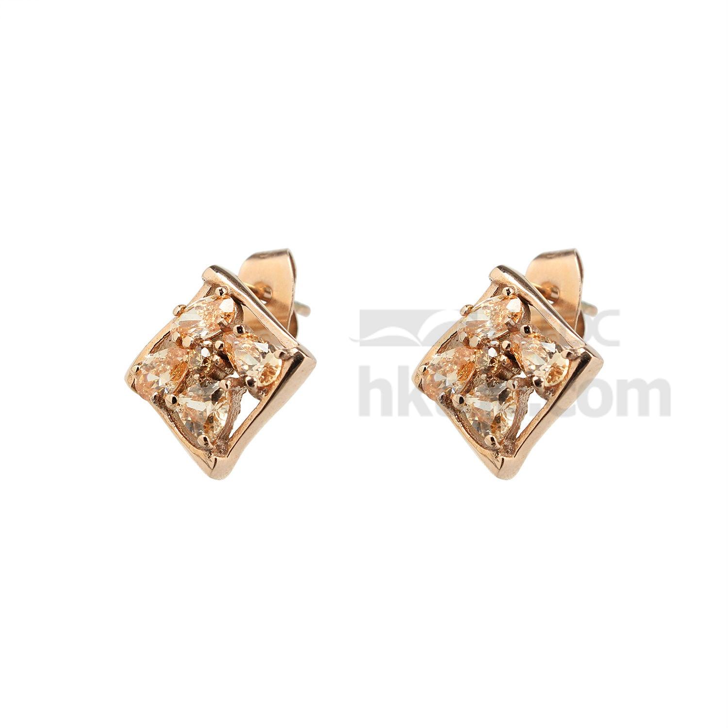 Featured here is a pair of stainless steel earrings with rose gold plating. The earrings come in square shape and is set with four gemstones in different cuts. They flaunt the highest quality and are great as fashion accessories for both casual and formal occasions.