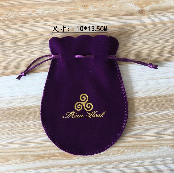 1. Material: 1C velvet material + silk printing logo + drawstring