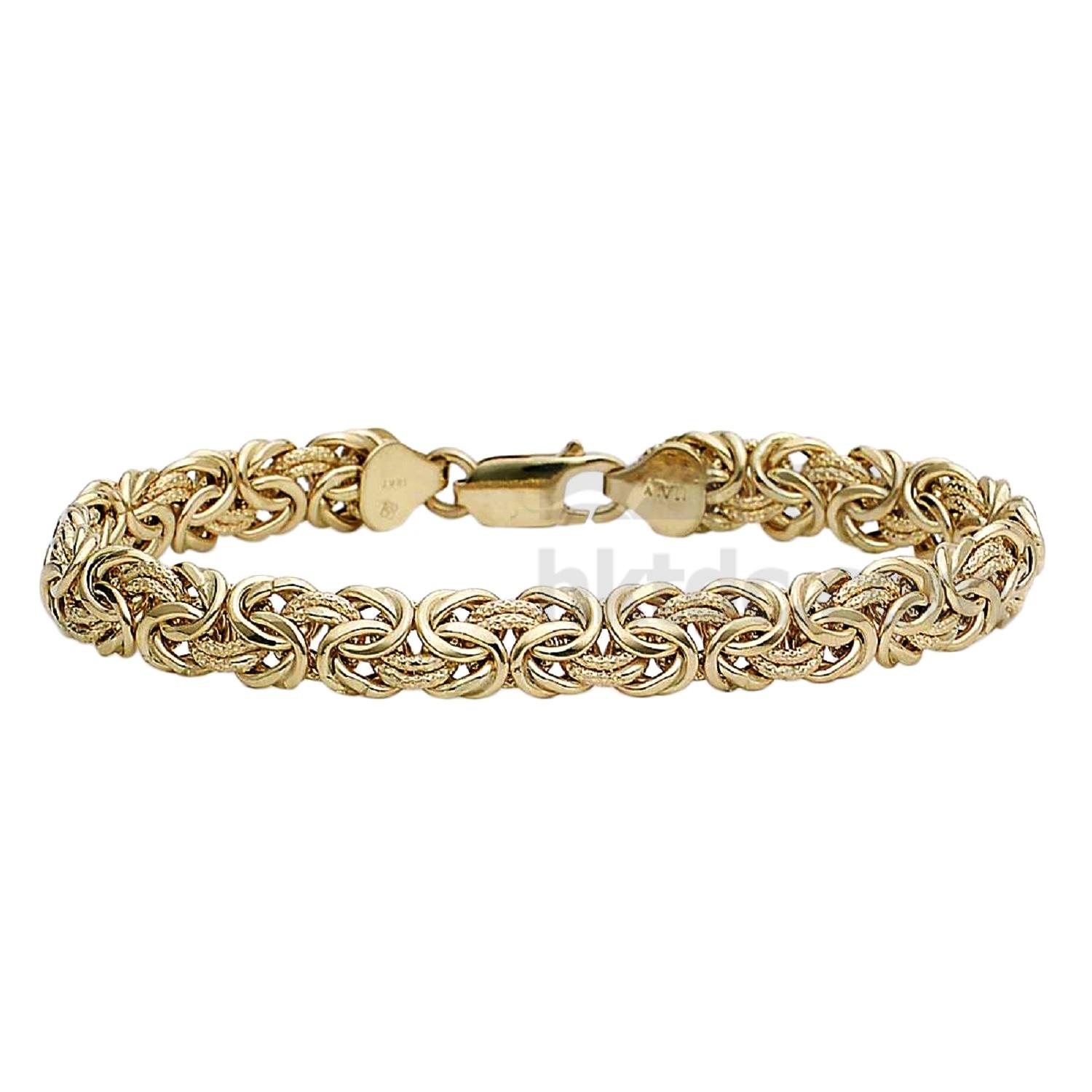 • Recalling the richness of a bygone era, our classic Byzantine bracelet is crafted to be both voluminous and lightweight. Alternating textured and polished, hollow 18k Italian gold links form a distinctive, historically-inspired pattern.