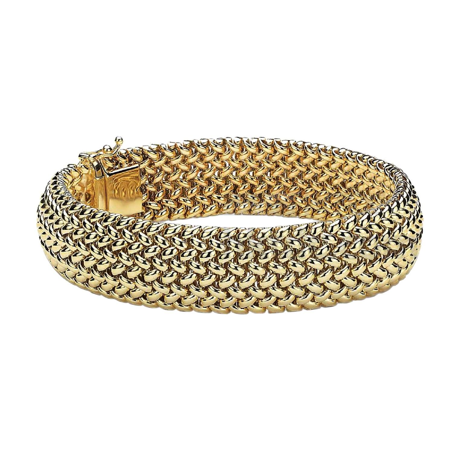 • A true statement of elegance, this Italian crafted mesh bracelet is the perfect staple for every day wear. Forged of 14k yellow gold and finished off with a box clasp for ultimate safety, it is sure to impress.