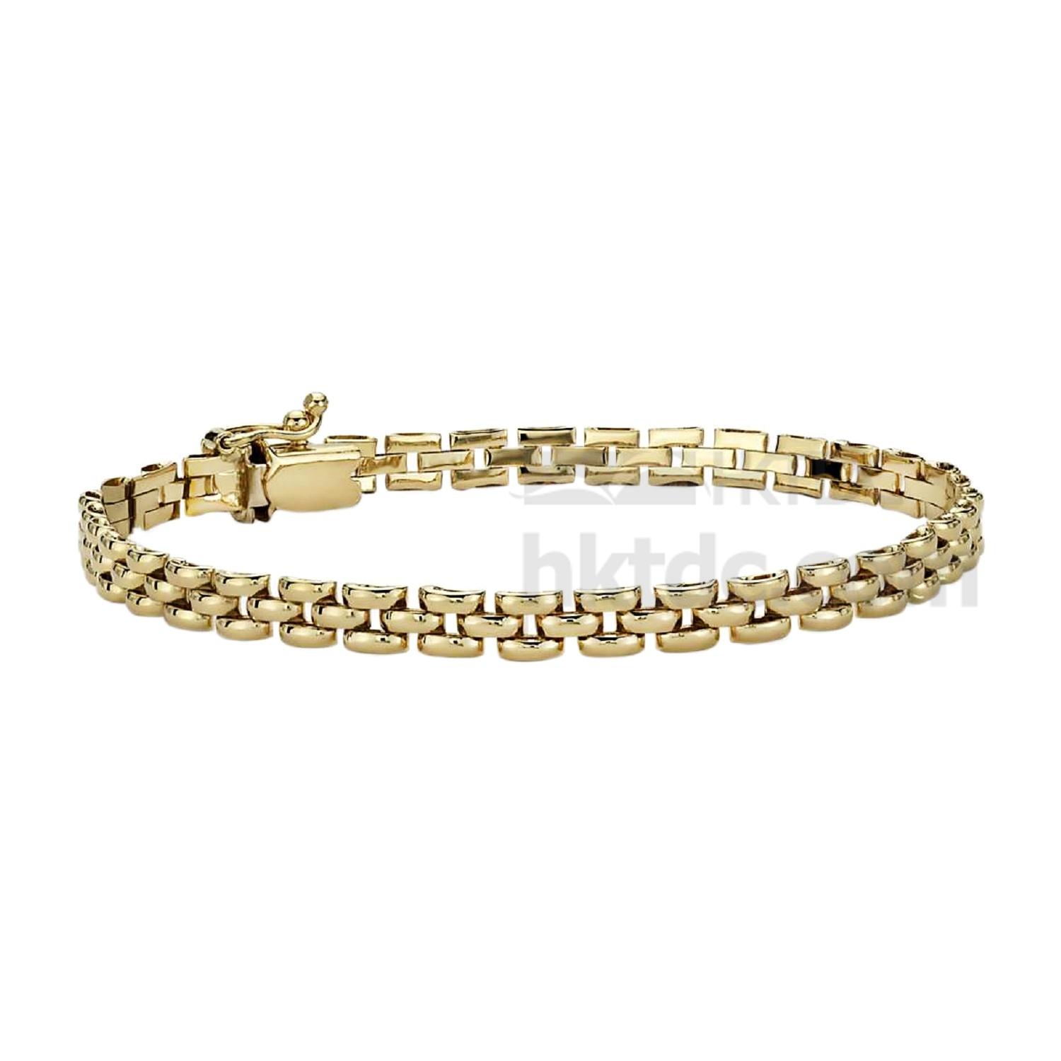 • Classically chic, this petite link bracelet is crafted in a panther design of 14k yellow gold and finished with an enduring box clasp.