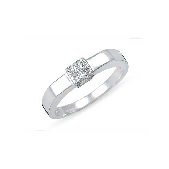 This simple polished 14-carat white gold ring is highlighted by the 56 small diamonds set in the middle. The round-shaped diamonds are delicately cut and polished, creating ultra sparkling effect. This simply gorgeous ring is a presentation of beauty in simplicity. Sending this to your special one will leave her a good impression.
