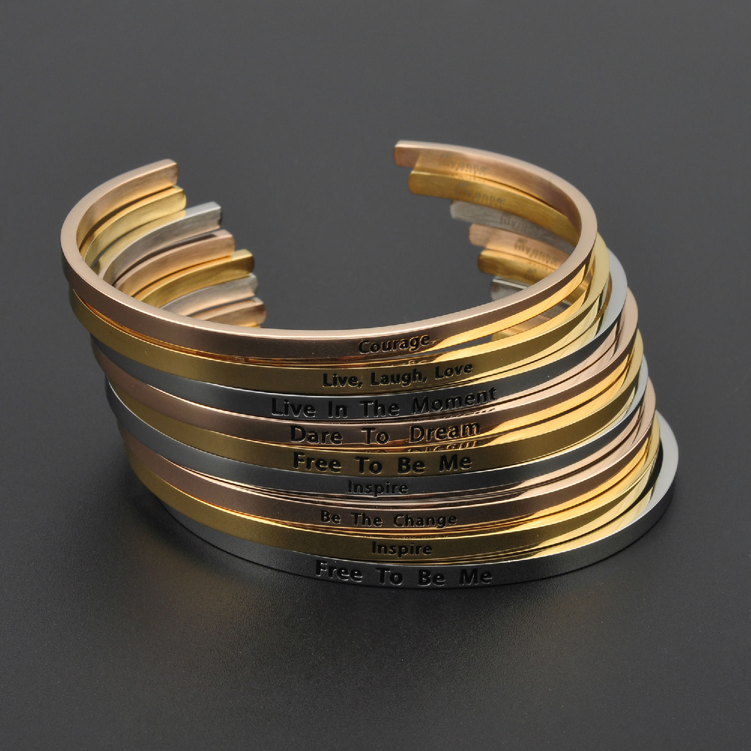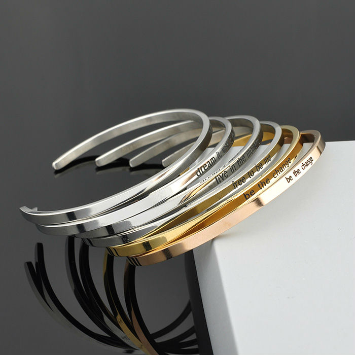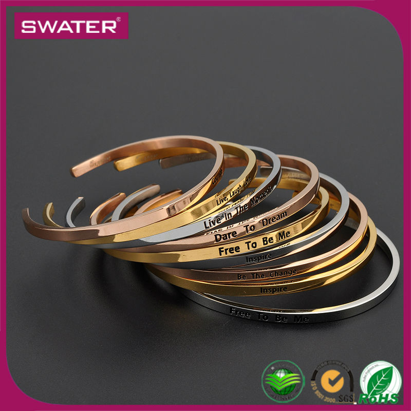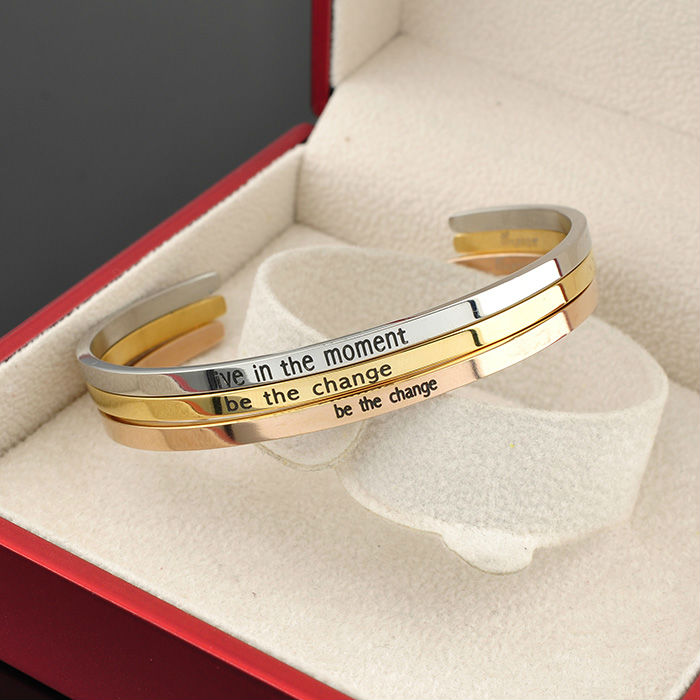 Jewelry Ladies Engraved Stainless Steel Cuff Fancy Gold Bangle