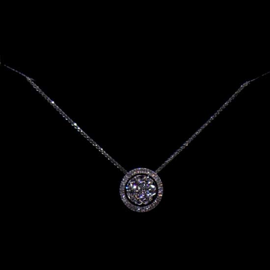 This gorgeous necklace features a dazzling 18K white gold construction. It comes with a round pendant with sparkling diamonds all over for a touch of uniqueness. This stylish necklace is suitable for special occasions.