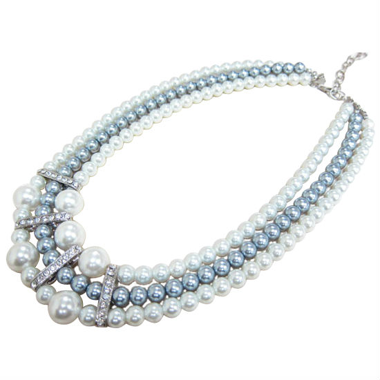 Strung with round-shaped pearl-like jewelry in uneven sizes, this inviting jewelry necklace flaunts 3 layers for a stunning appearance. The necklace is embellished with 4 rectangular ornaments inlayed with tiny diamante. Boasting a captivating and demure design, this stunning necklace transitions your ensemble seamlessly from day to night.