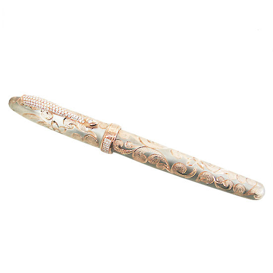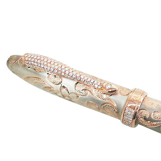 This luxurious jewelry fountain pen features a barrel in 925 sterling silver with golden handcrafted etch pattern. The 18K gold nib allows ultra-smooth gliding and exudes quality writing. With the complementary executive-style gift box, this diamond fountain pen makes a respectable gift for someone special.