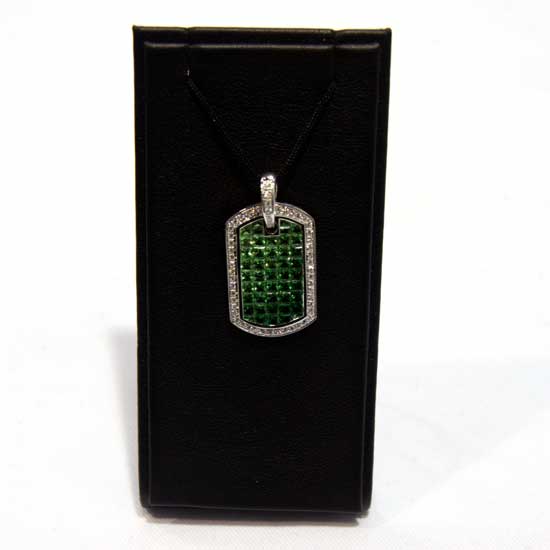 This stylish pendant features a 14K white gold construction. It comes with a green-colored gemstone and sparkling diamonds all over for a touch of elegance. This gorgeous pendant is suitable for special occasions.