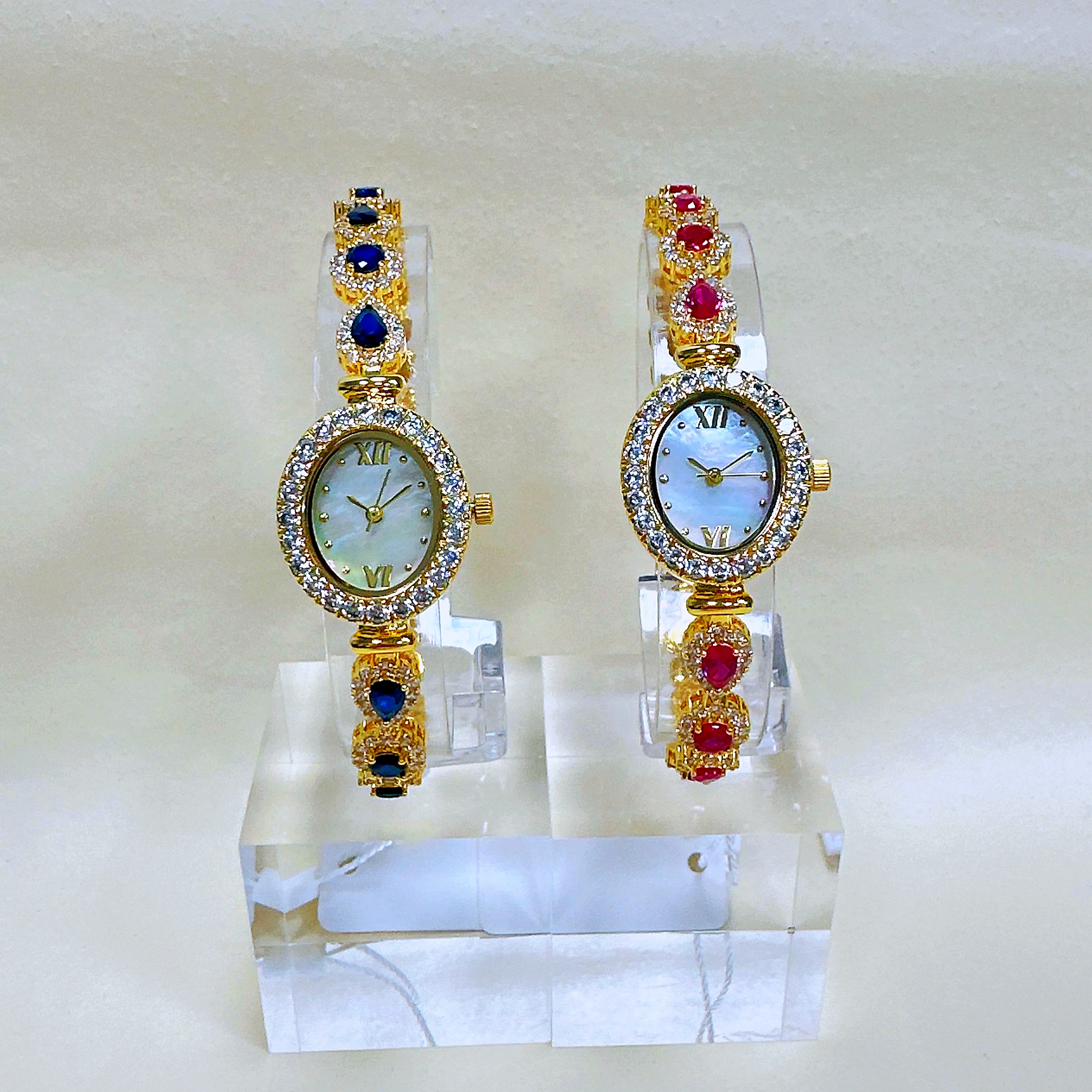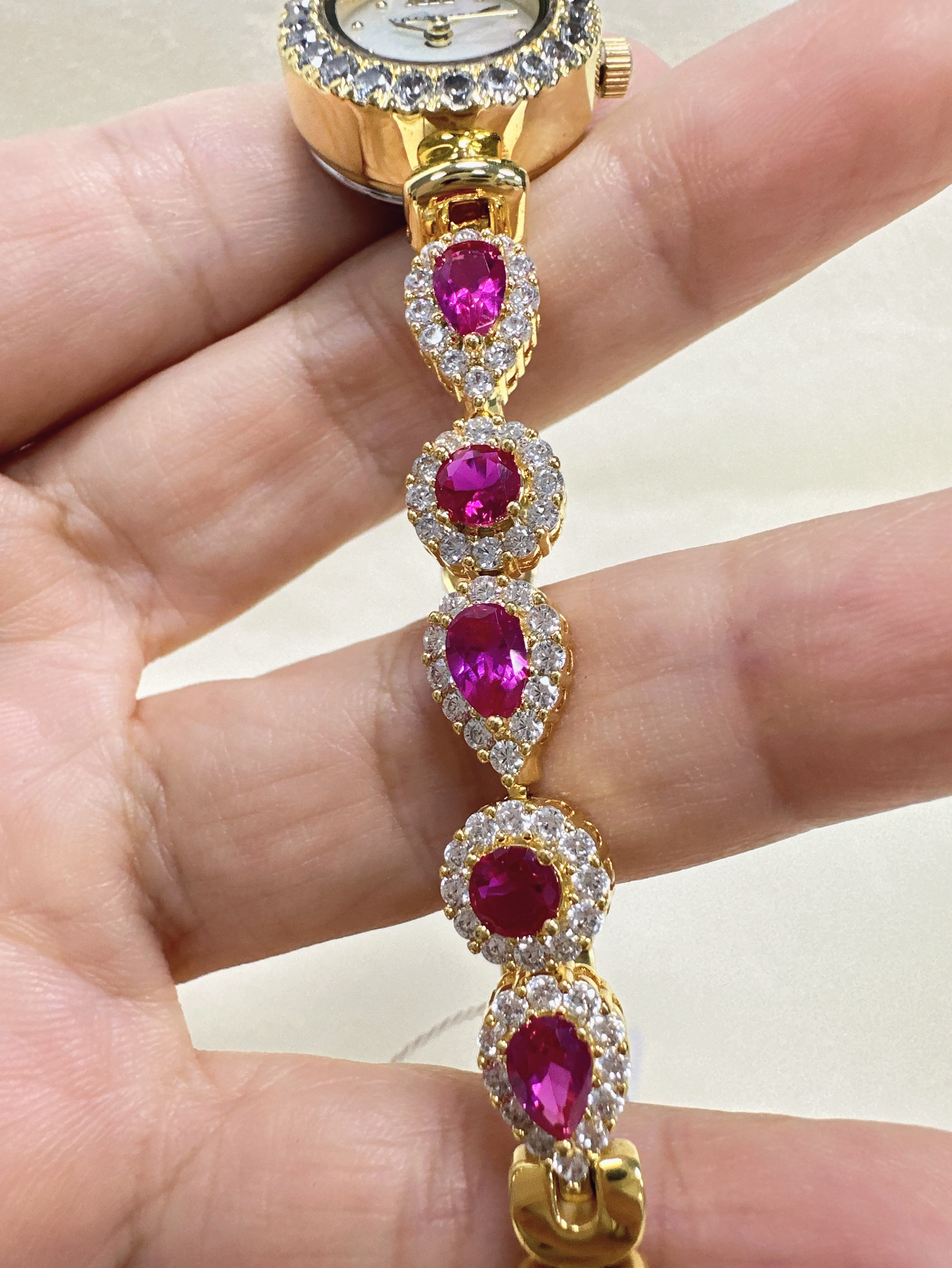 * Elegant Design: Oval gold-plated brass case with sparkling cubic zirconia bezel