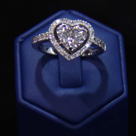This gorgeous ring features a dazzling silvery construction. It boasts a heart-shaped design with sparkling diamonds, showcasing a touch of sophistication. Add this stylish ring to your jewelry collection.