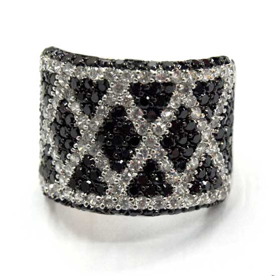 This gorgeous ring features a dazzling 925 sterling silver construction. It boasts a sparkling Cubic Zirconia stones in black and white, showcasing a touch of elegance. This stylish ring is suitable for special occasions.