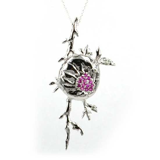 This is stylish jewelry set with a brooch and a pendant. This jewelry set is crafted with rubies and green sapphires for added glamor. Add elegance and charm to your look with this jewelry set.