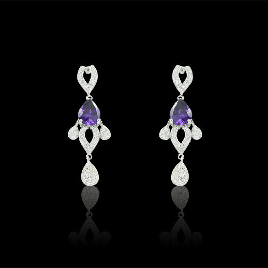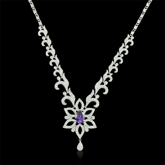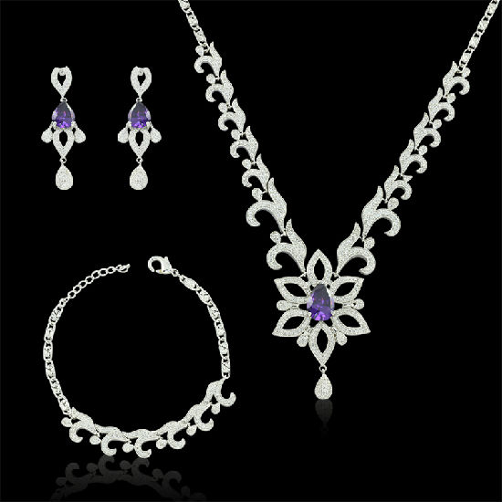 Exhibited here is a jewelry set made of premium quality materials. The set includes a pair of dropped earrings, a necklace and a bracelet. Flaunting white shimmer with a purple tint, this amazingly gorgeous jewelry set bestows you extra gracefulness.