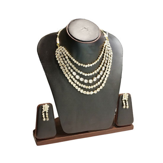 This is a precious jewelry set featuring a diamond necklace and a pair of diamond drape earrings. The necklace is formed by strands of 925 silver necklaces with shimmery diamond embellishments. The drape earrings perfectly matches the necklace for a splendid, gorgeous feminine style.