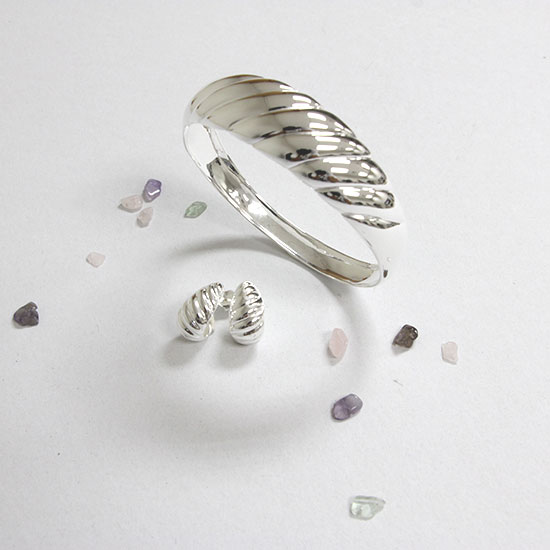 - Includes: sterling silver organic bangle and sterling silver organic earrings.